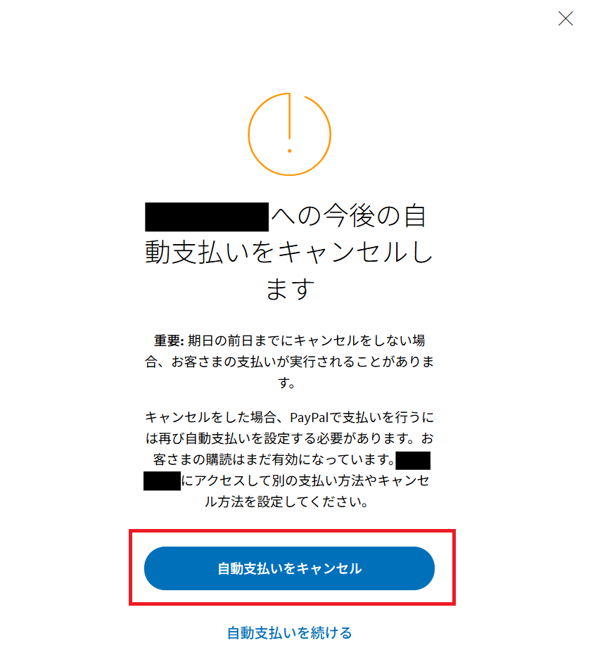 [自動支払いをキャンセル]ボタンをクリックします。